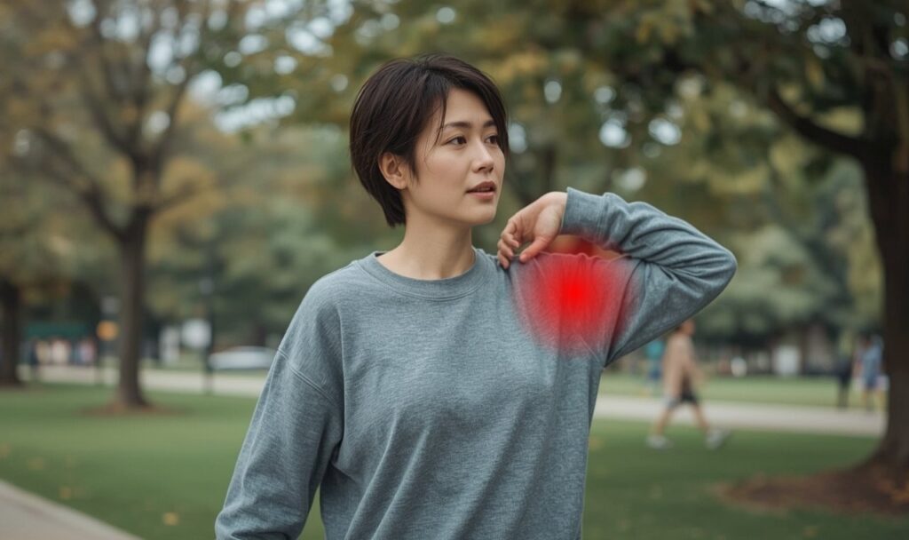 四十肩や五十肩の状態で、腕を無理に上げようとすると、症状を悪化させることもあります。